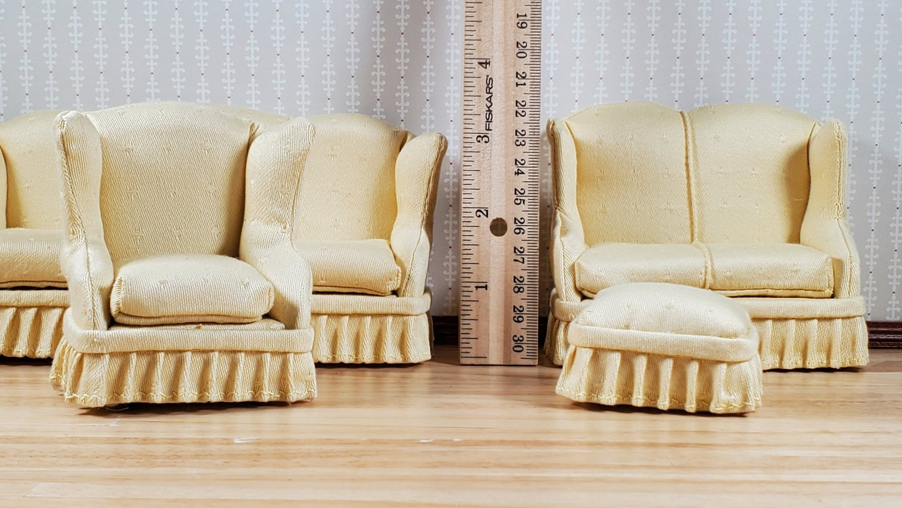 Dollhouse Living Room Set 4 pc Pale Yellow 1:12 Scale Miniature Furniture - MiniatureCrush