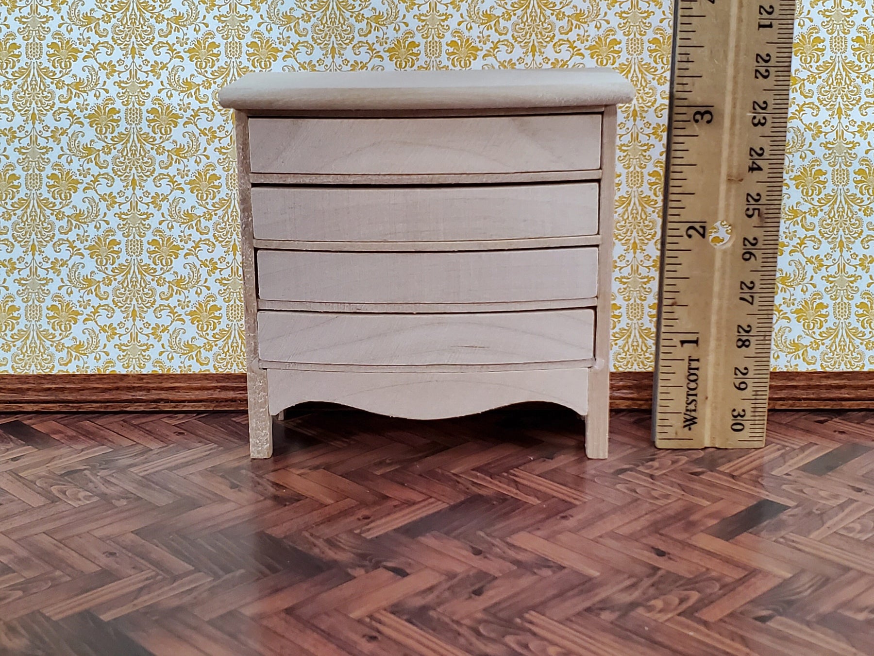 This can be finished in so many ways, includes 8 brass drawer pulls for 4 opening drawers