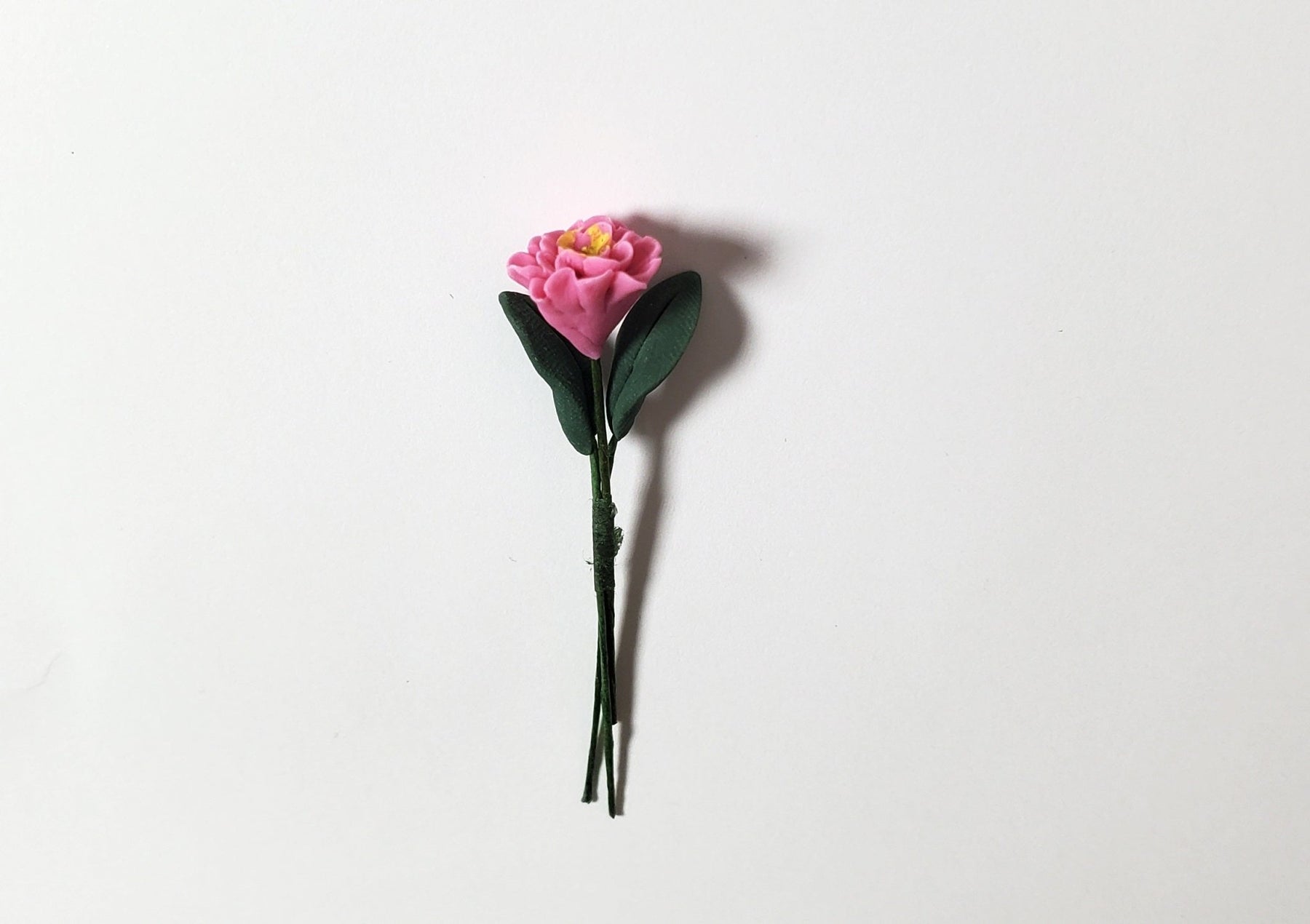 1:12 Scale Dollhouse Miniature single stem of a pink Zinnia with leaves. (wire stem is posable)