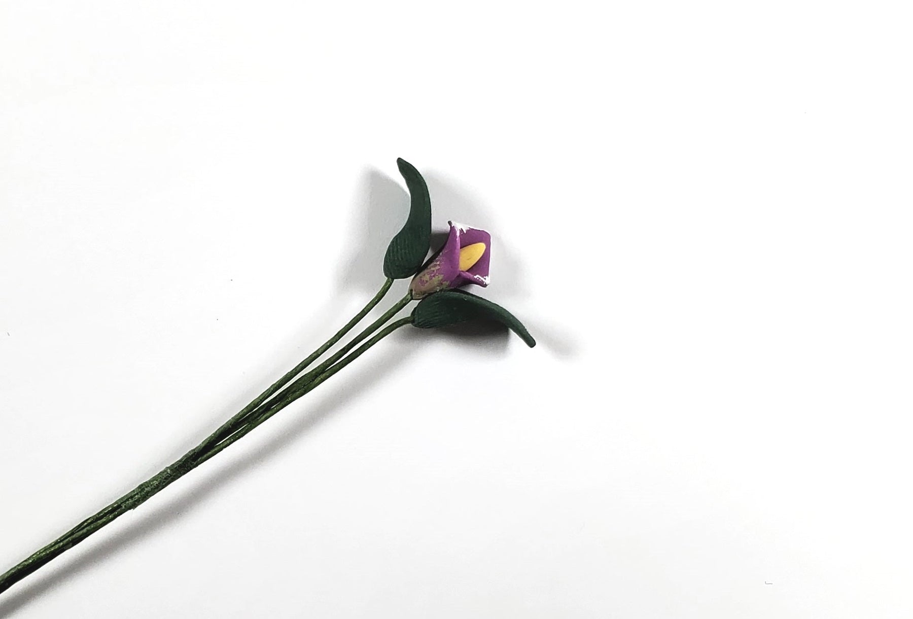 1:12 Scale Dollhouse Miniature single, extra long stem of a purple Calla Lily with leaves. (wire stem is posable)