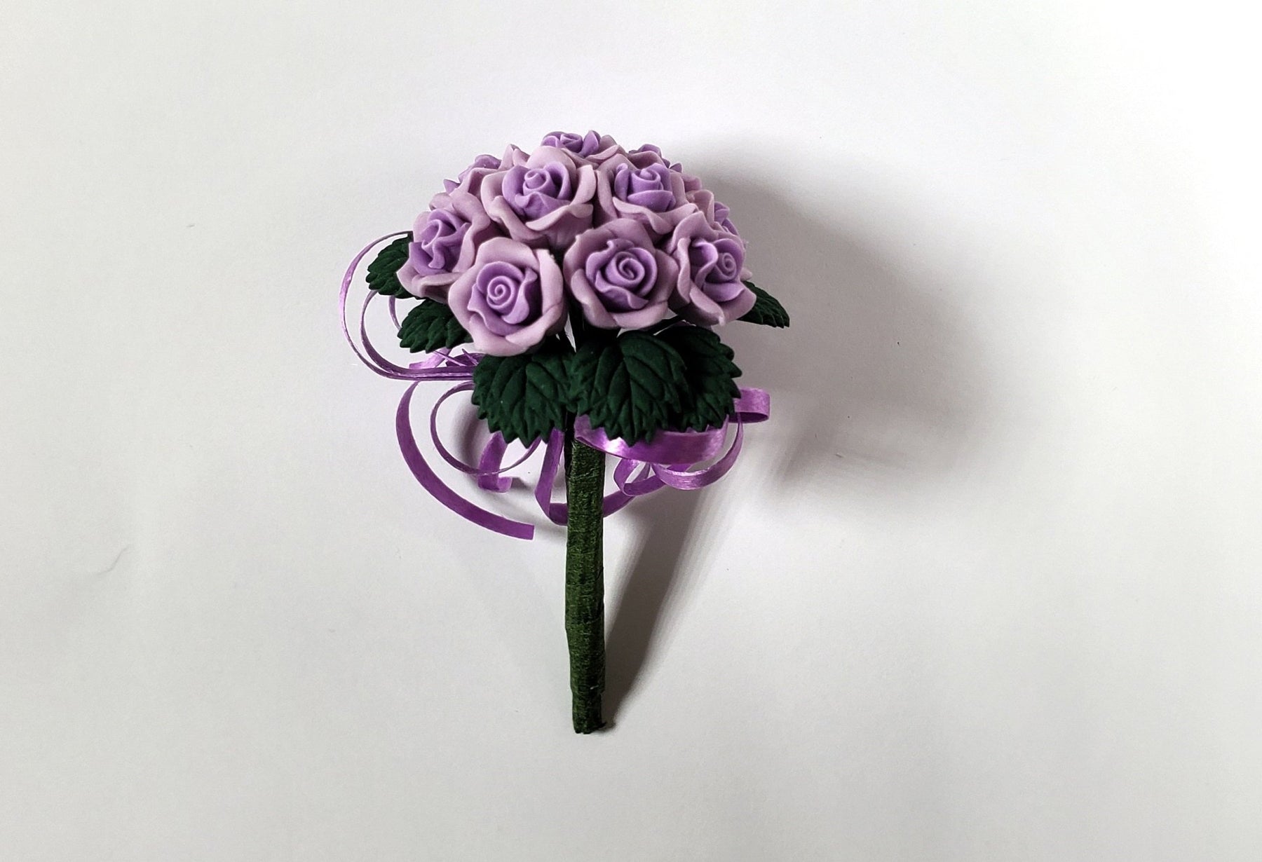 1:12 Scale Dollhouse Miniature romantic lavender purple Roses in a Wedding or Bridal Bouquet arrangement with purple ribbons (stems are posable)