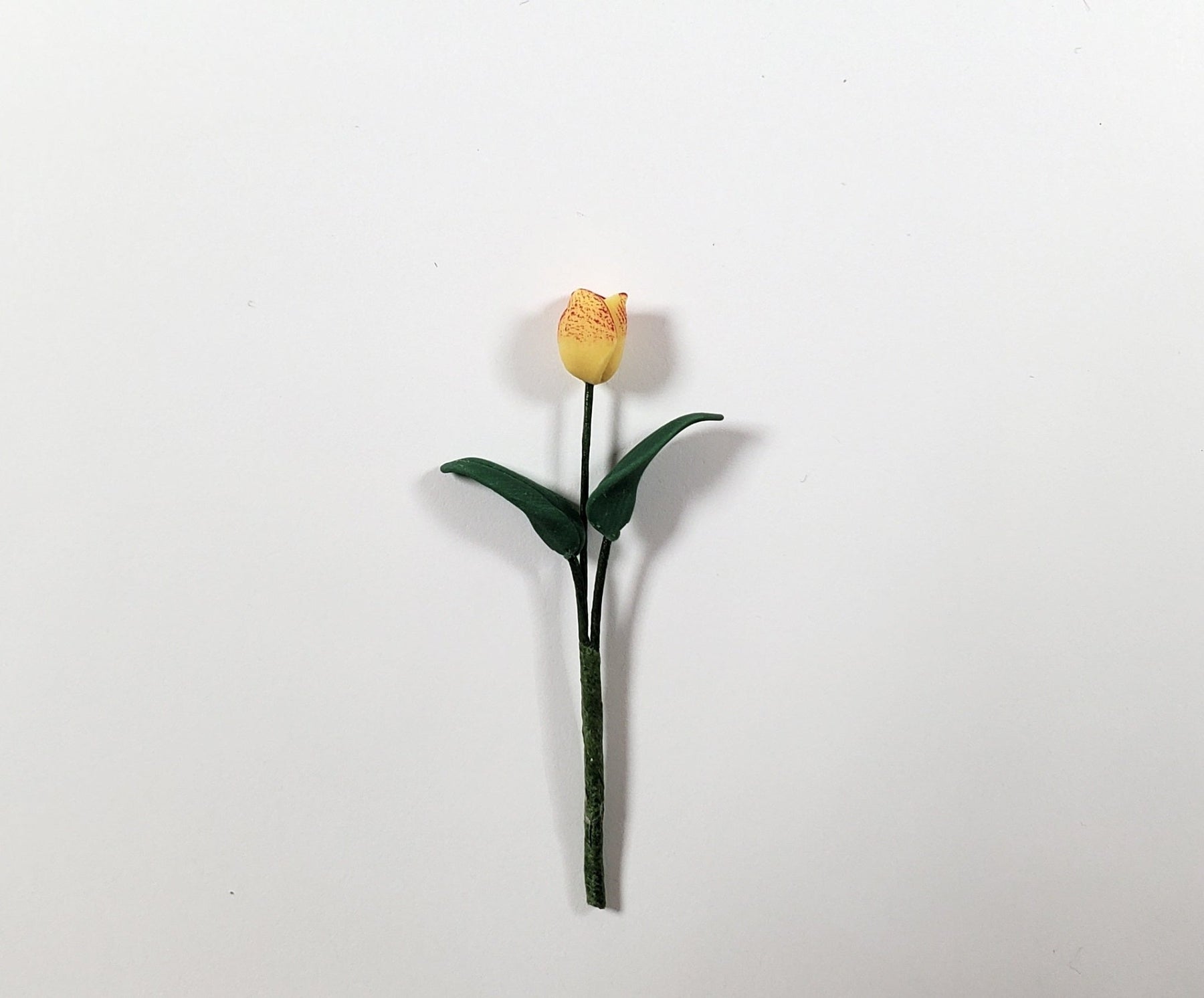 1:12 Scale Dollhouse Miniature single, long stem of a yellow with red Tulip with leaves. (wire stem is posable)