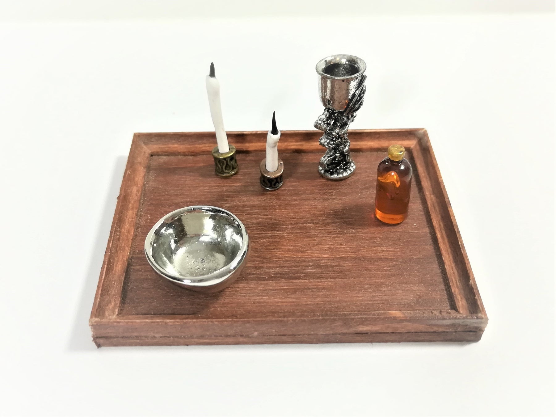 H074Dollhouse Miniature Dragon Goblet Chalice Metal Silver Tone 1:12 Scale Decoration