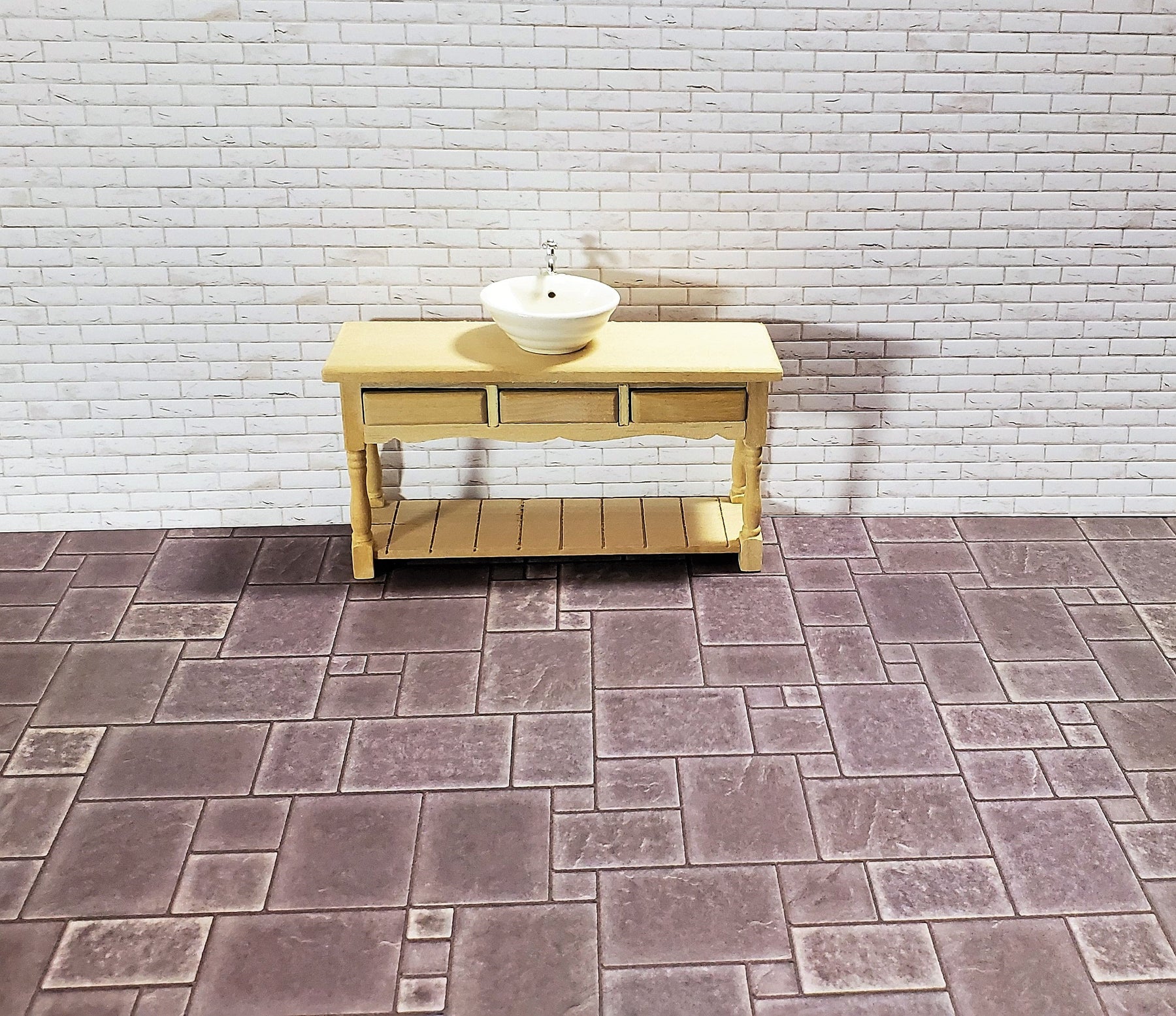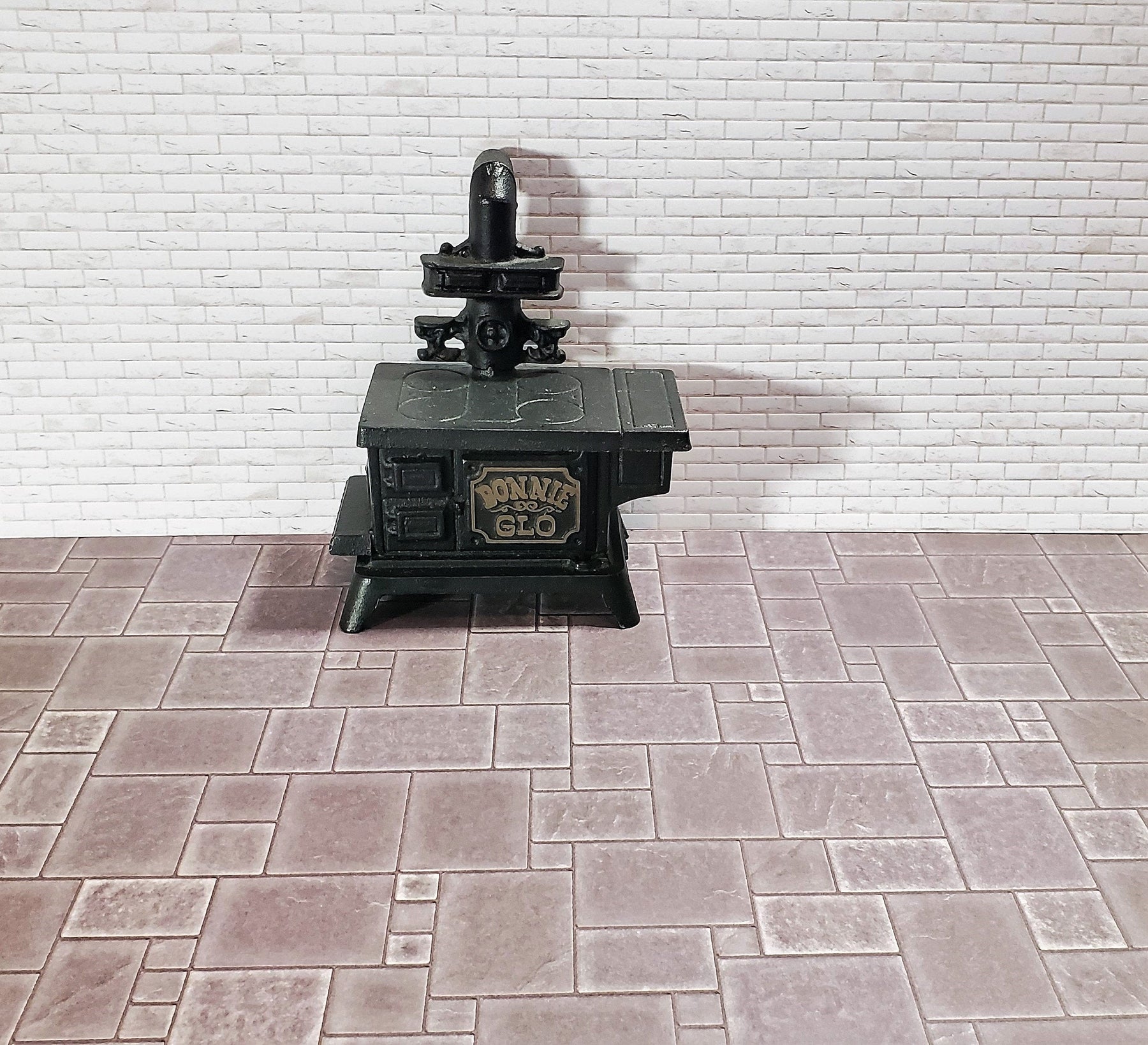 Dollhouse White Brick Weathered Aged Embossed Card 1:12 Scale Wallpaper