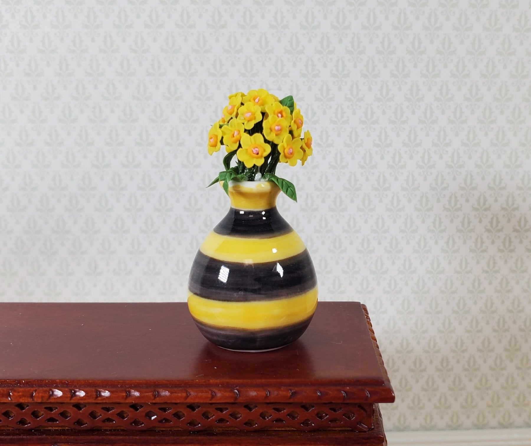 Dollhouse Miniature Yellow Flowers in a Bumble Bee Ceramic Vase 1:12 Scale - MiniatureCrush