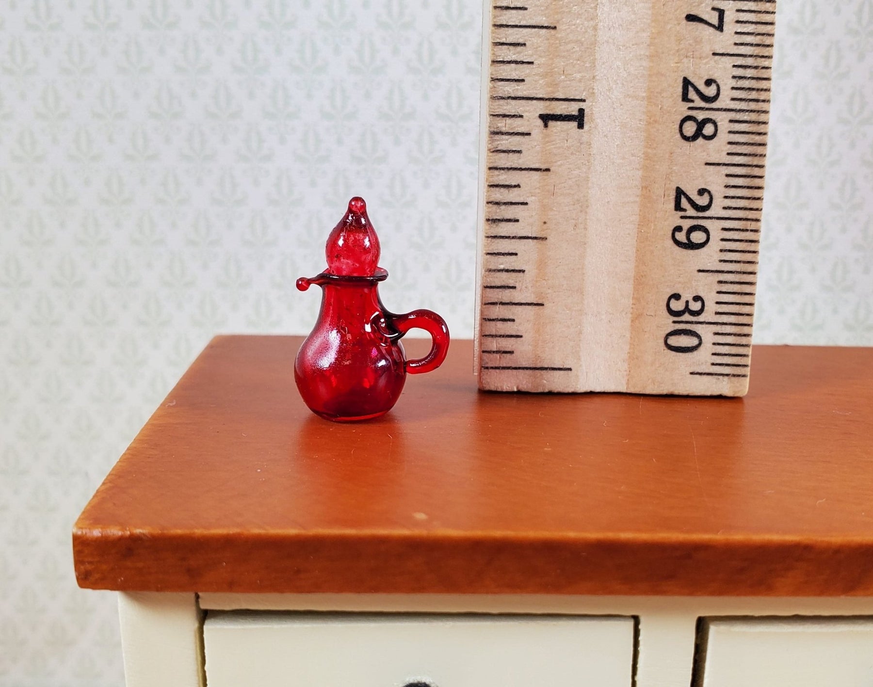 Dollhouse Cruet Cranberry Red Glass with Stopper 1:12 Scale Miniature