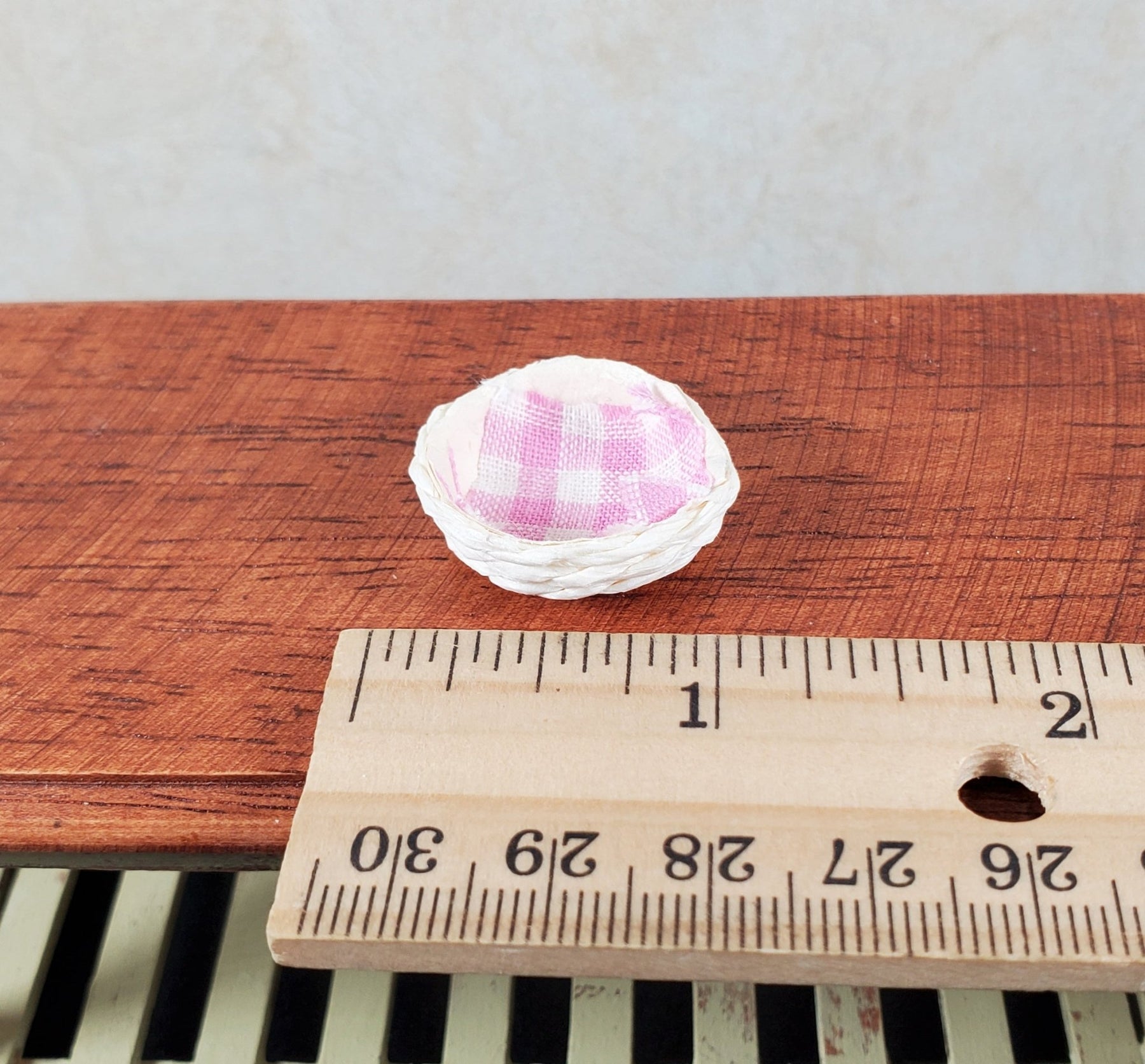 1:12 Scale Dollhouse Miniature adorable small round natural fiber basket in white with a pink and white napkin inlay (food not included)