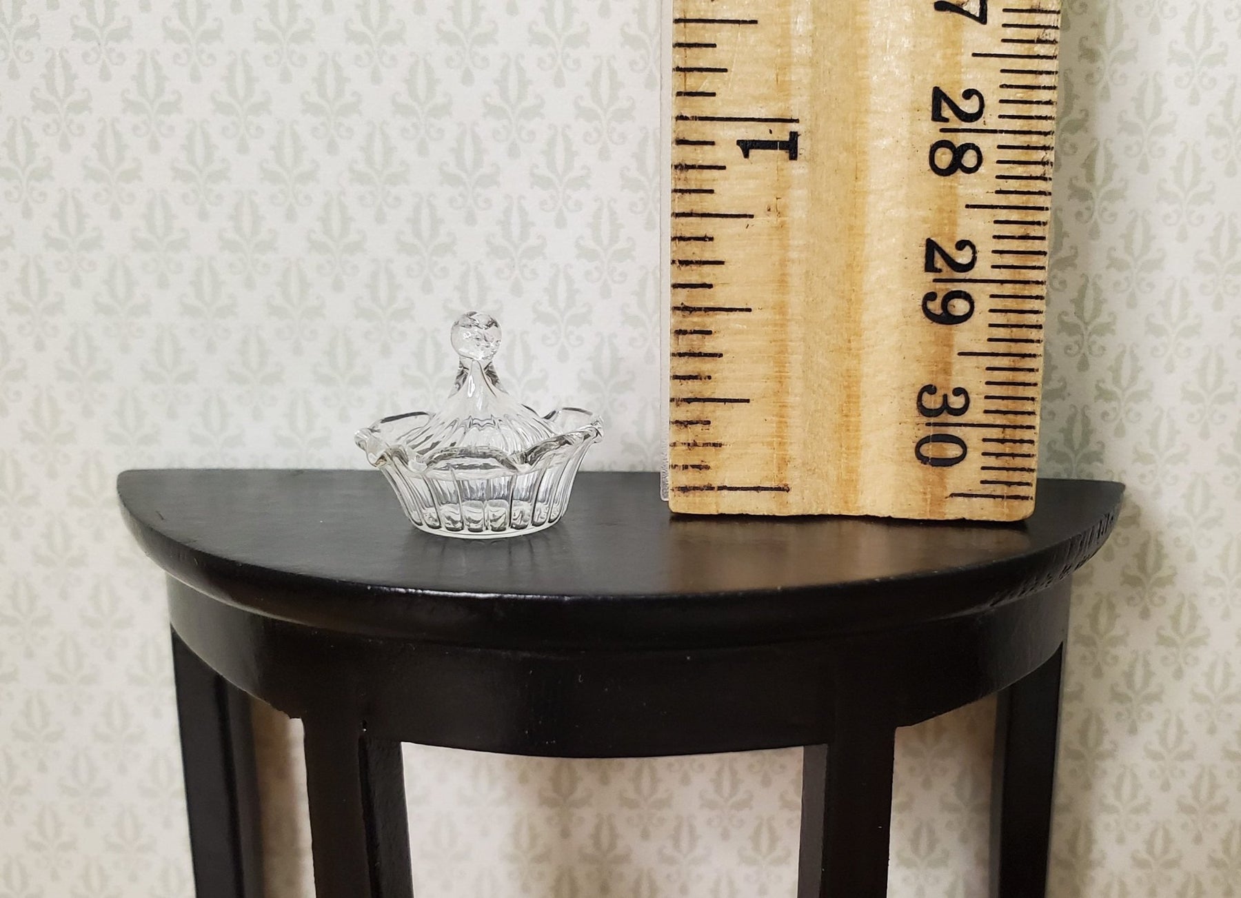 1:12 Scale Dollhouse Miniature tiny clear glass ribbed dish with a cover