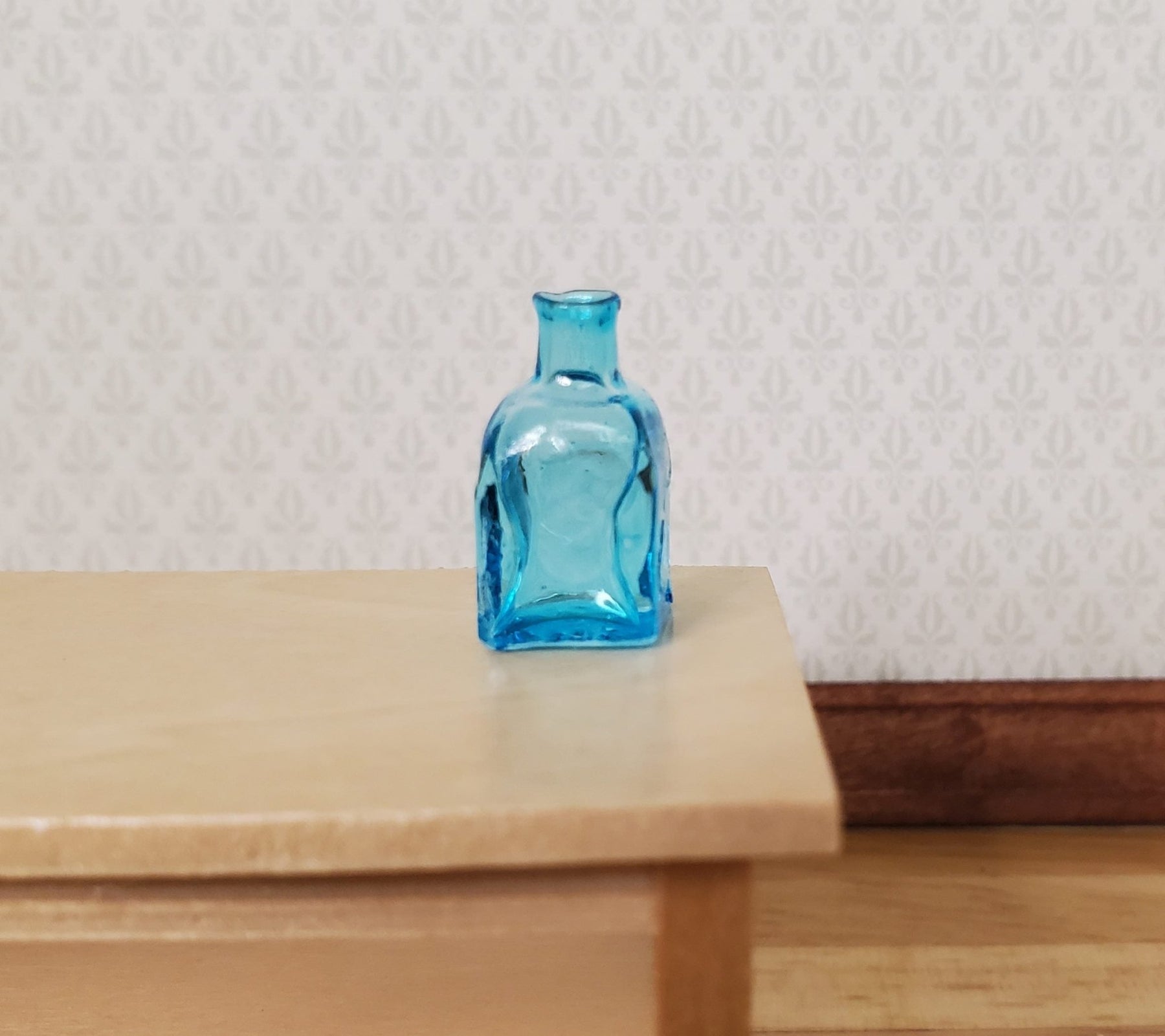 Miniature Aqua Glass Bottle Jar Vase Square Bottom 11/16" 1:12 Scale Dollhouse - MiniatureCrush