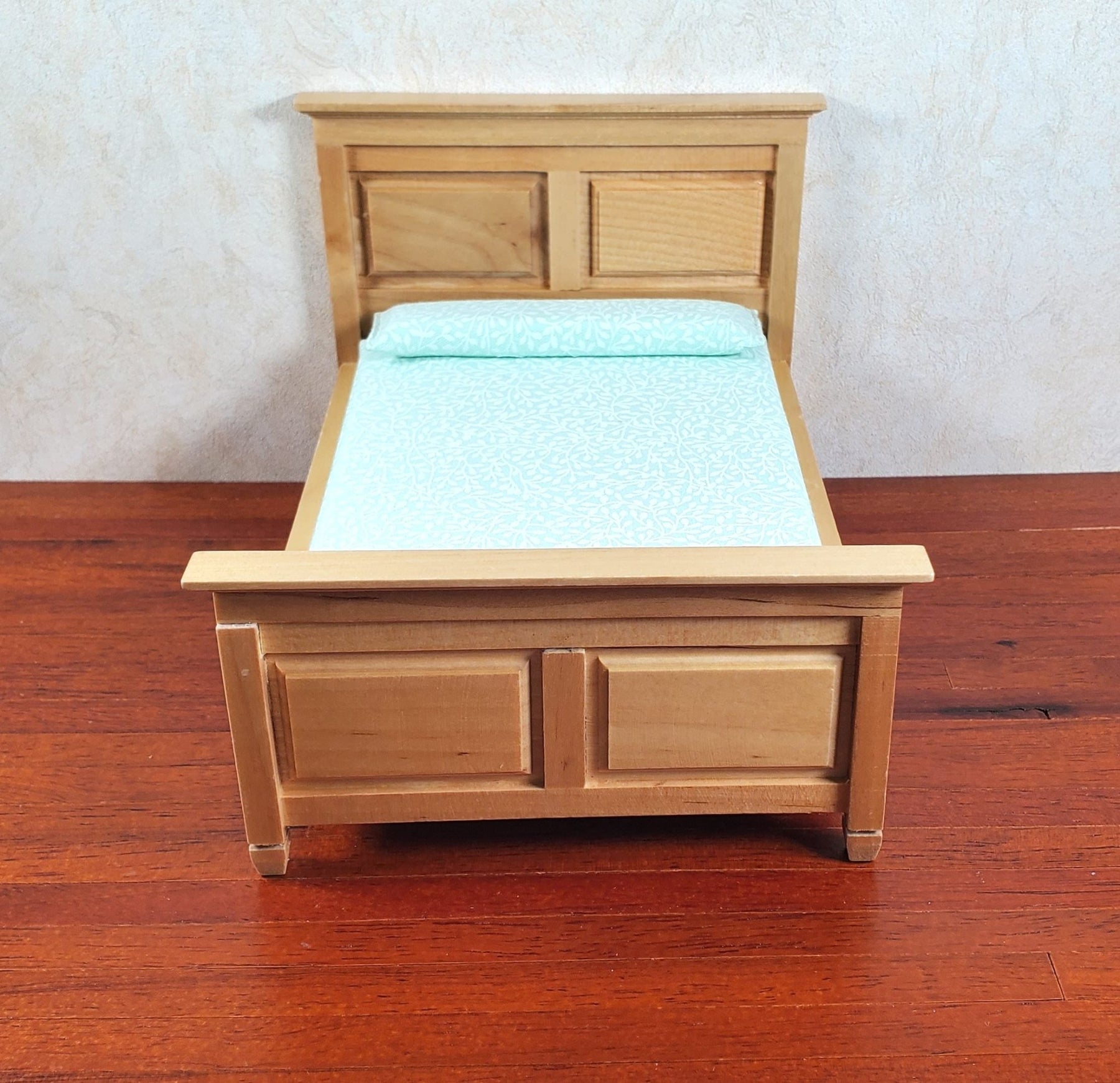 Dollhouse Double Bed Wood Light Oak Finish 1:12 Scale Bedroom Furniture - MiniatureCrush