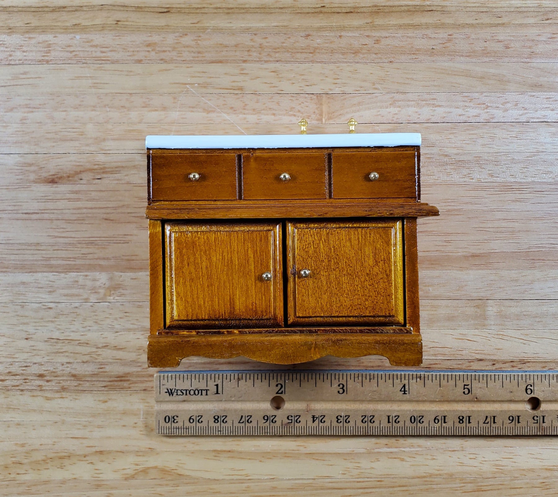 Dollhouse Kitchen Set Sink Fridge Table Chair 1:12 Scale Furniture Walnut Finish