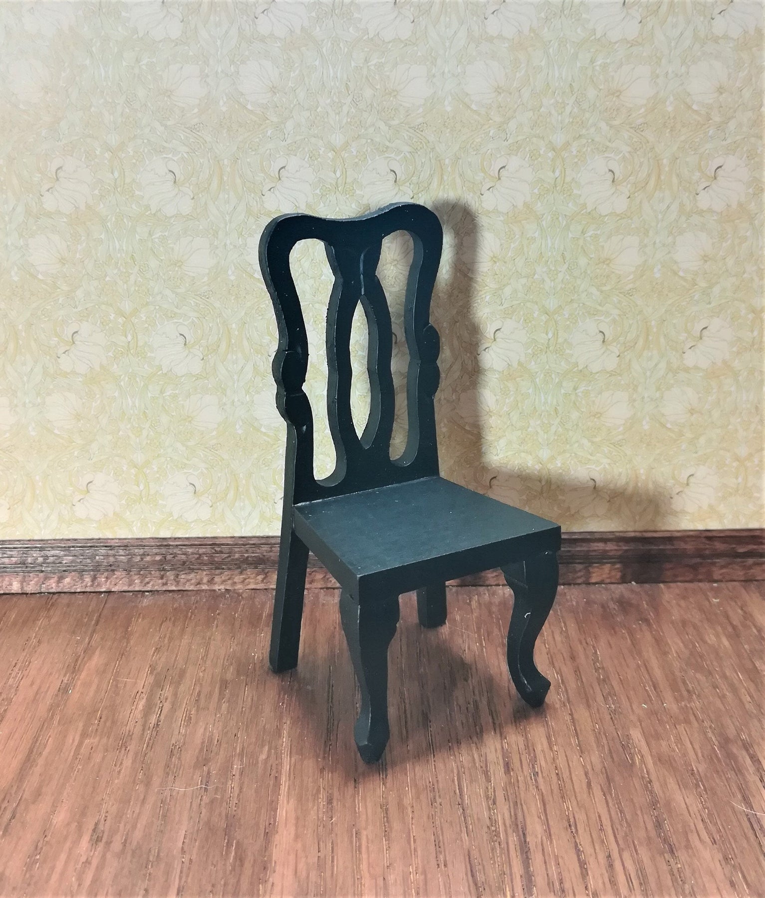 Dollhouse Chair Black Dining or Kitchen Chair 1:12 Scale Miniature Furniture