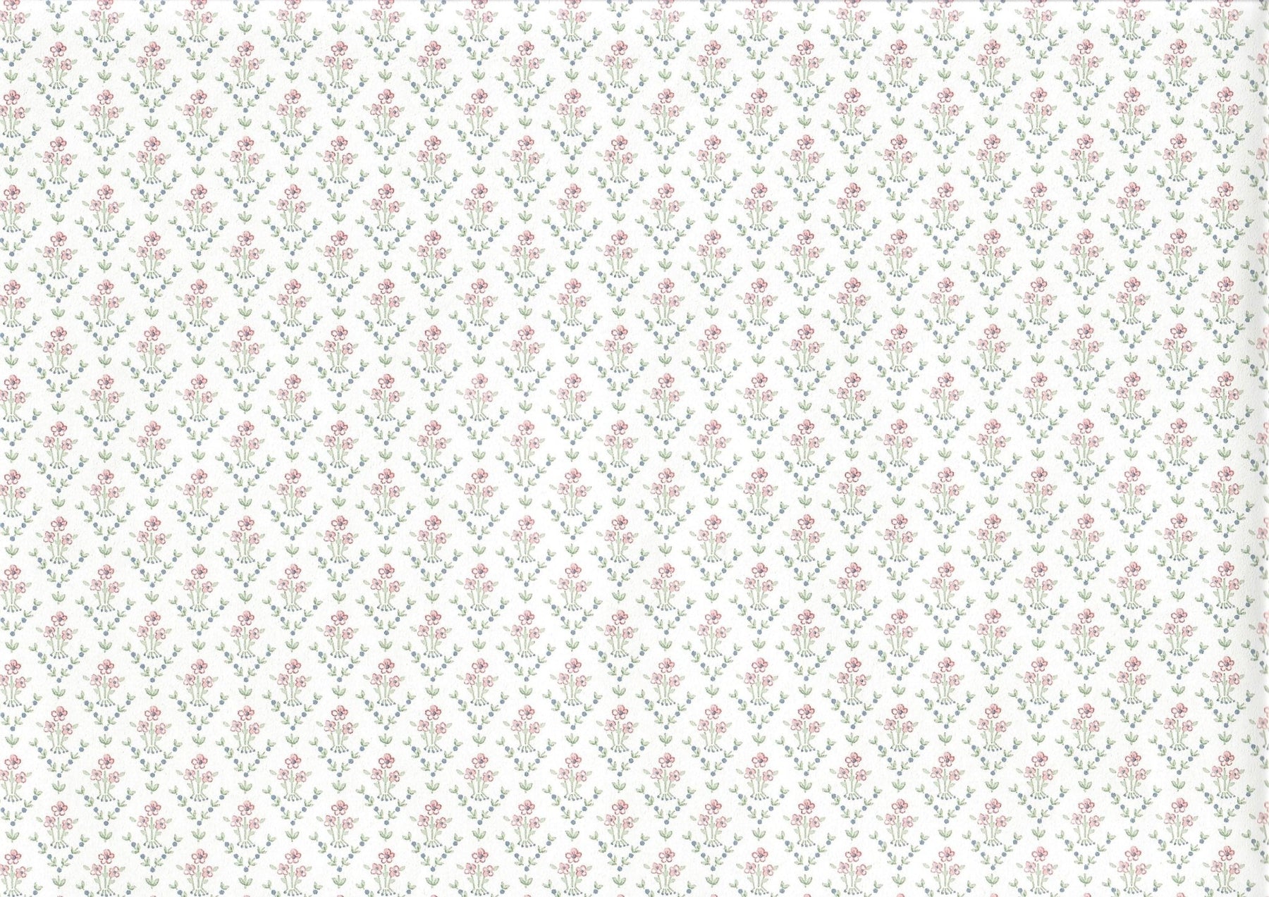 Dollhouse Wallpaper Dainty Daises 3 Sheets White Pink Green Blue - MiniatureCrush