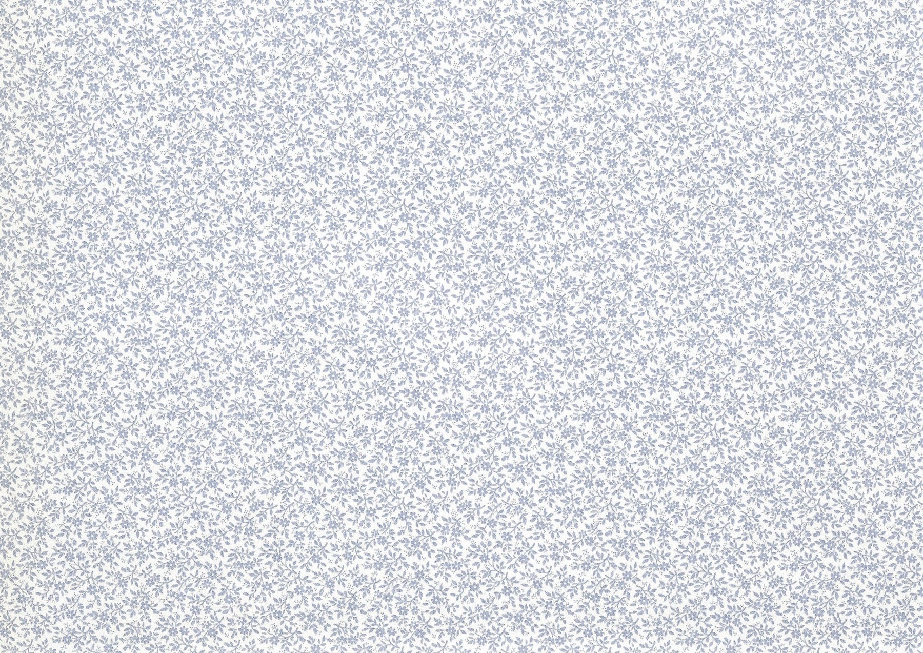 Add a touch of vintage charm to your dollhouse with this wallpaper featuring delicate tiny periwinkle flowers! The white background is gracefully overlaid with an intricate all-over pattern of small blue blossoms, dainty leaves, and fine branching stems that weave together like delicate lace-creating an airy, romantic, and timelessly elegant look.